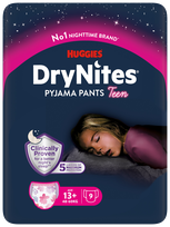 HUGGIES DryNites Teen girl 13+, 49-60kg biksītes, 9 gab.