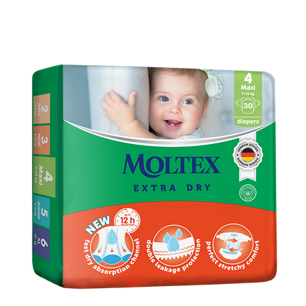 “Moltex Extra Dry” 4 MAXI ir īpaši izstrādāts mazuļiem no 9 līdz 14 kg.
