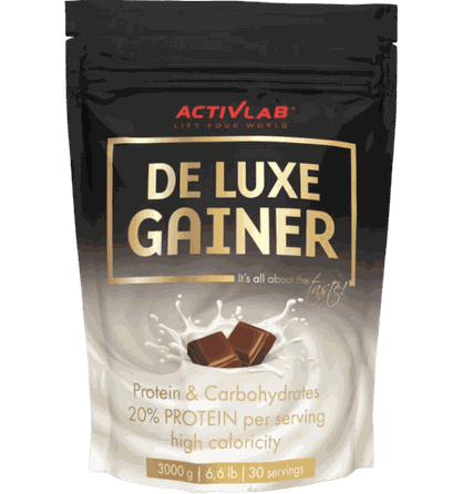 Activlab De Luxe Gainer 3000g. Olbaltumvielu un ogļhidrātu maisījums kokteiļu pagatavošanai ar saldinātājiem.