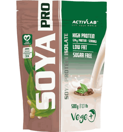 Activlab Soya Pro 500g. Proteīna pulveris kokteiļu pagatavošanai ar saldinātājiem.Kafijas garša satur kofeīnu (9 mg/30 g). Nav ieteicams bērniem un grūtniecēm.