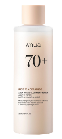 Anua Rice 70 Glow Milky Toner ir pienveida toniks, kas mitrina, mīkstina un baro ādu, izlīdzina ādas toni un samazina pigmentācijas redzamību.