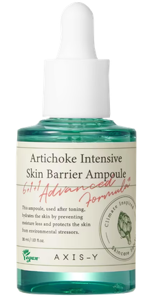 AXIS-Y Artichoke Intensive Skin Barrier Ampoule ir mitrinoša un nomierinoša ampula ar artišoka un alvejas ekstraktu. Ampula palīdz mazināt iekaisumu, apsārtumu un kairinājumu, un, pateicoties tās dziedējošajai un pretiekaisuma iedarbībai, tā efektīvi cīnās ar izsitumiem.