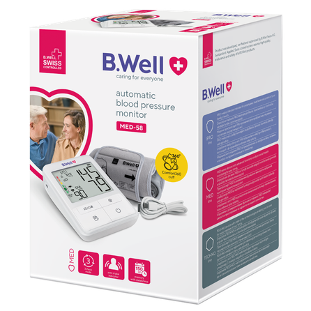 MED-58 piedāvā 3CHECK režīmu – ierīce automātiski veic trīs mērījumus pēc kārtas un analizē rezultātus pēc īpaša algoritma, kā arī 3AVG funkciju – pēdējo 3 mērījumu vidējo vērtību. Tam ir arī pulsa aritmijas indikators un asinsspiediena klasifikācijas skala – vieglai rezultātu interpretācijai. B.Well asinsspiediena mērītājs pārbauda, vai aproce ir pareizi uzlikta, un parāda kļūdas.