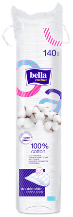 Bella Cotton vates kosmētiskās plāksnītes izgatavotas no 100% kokvilnas. Divpusīgā struktūra nodrošina precīzu un maigu kopšanu. Slēgtās maliņas nodrošina, ka tās nepūkojas.