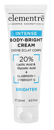 IEDARBĪBA: intensīvi spilgtinošā ķermeņa krēma sastāvā ir 20 % pīlinga skābes apvienojumā ar spilgtinošām aktīvajām vielām ar intensīvu iedarbību uz blāvu vai raupju ādu. Āda sāk izskatīties gludāka un starojošāka, šķiet mīksta, ādas tonis ir vienmērīgs un pati āda mirdzošāka.