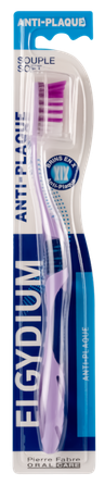 ELGYDIUM Anti-Plaque zobu birste ir izstrādāta efektīvai cīņai pret baktēriju aplikumu - vienu no galvenajiem smaganu un zobu veselības apdraudējumiem. Tās smalki noapaļotie sariņi, kas izvietoti X veida rakstā, viegli sasniedz grūti pieejamās vietas un palīdz noņemt vairāk aplikuma nekā parasta manuālā zobu birste, kā arī saudzē zobus un smaganas