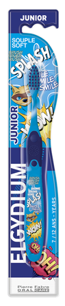 ELGYDIUM ZOBU BIRSTE JUNIOR ir zobu birste, kurai ir smalki noapaļoti sariņi, kas rūpīgi attīra zobus, vienlaikus saudzējot smaganas un atvieglojot tīrīšanu starpzobu vietās.