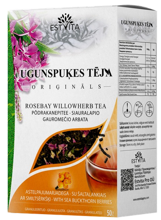 Izmantojot seno dziļās fermentācijas un žāvēšanas tehnoloģiju, produkts saglabā savas unikālās un brīnumainās īpašības un izsmalcināto pikanto garšu. Ugunspuķes tēja satur daudzas probiotikas, kas atbalsta veselīgu kuņģa-zarnu trakta mikrofloru, kas uzlabo gremošanu Palīdz samazināt holesterīna līmeni asinīs. Samazina sirds un asinsvadu slimību risku. Smiltsērkšķis piešķir tējai unikalu garšu kombināciju: maigu skābumu, patīkamu augļu saldumu un vieglu rūgtumu.