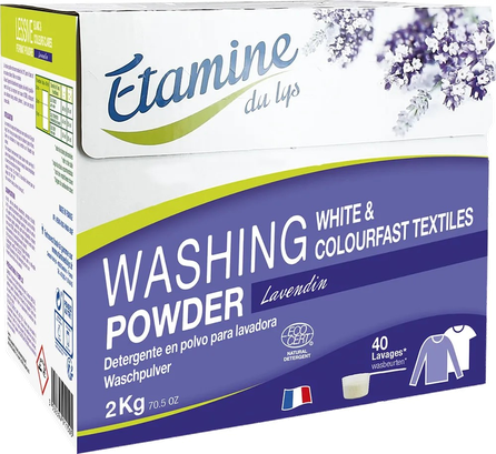 Šis Etamine du Lys veļas pulveris ir paredzēts baltu vai gaišu audumu mazgāšanai ar rokām un veļas mašīnā. Veļa būs balta, nevis pelēcīgi balta! Lavandas aromāts, ar dabīgām ekoloģiskām ēteriskajām eļļām. Lieliski mazgā dažādās temperatūrās. Tikai 50 g šī efektīvā līdzekļa ir pietiekami, lai izmazgātu 5 kg veļas. Pietiek pat 40 mazgāšanas reizēm!