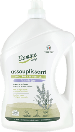 Etamine du Lys veļas mīkstinātājs ir izgatavots no 99% dabīgām sastāvdaļām un ir tikpat efektīvs kā parastie veļas mīkstinātāji. Mīkstinātāja izmantošana nodrošinās audumu porainību, maigumu un elastību, vienlaikus piešķirot tam dabīgu lavandas aromātu. Mīkstinātājs aizsargā auduma šķiedru, atvieglo gludināšanu, samazina elektrizēšanos. Ar ekoloģiskām ēteriskajām eļļām. Pietiek pat 40 mazgāšanas reizēm!