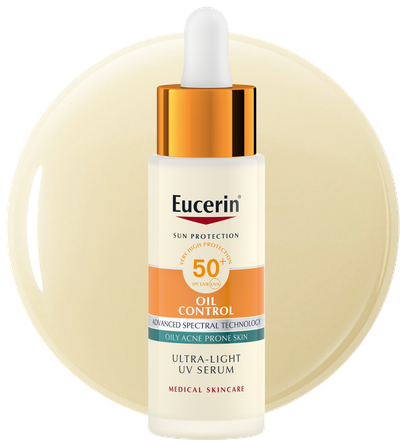 Eucerin Sun Oil Control ikdienas UV serums ar SPF 50+ taukainai un uz akni tendētai ādai.