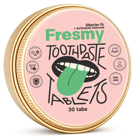 Fresmy zobu pastas tabletes satur hidroksiapatītu (HAp), kas ir netoksiska fluora alternatīva un dabiski atjauno zobu emalju, kā arī postbiotikas, kas palīdz uzturēt līdzsvarotu pH līmeni mutē un atbalsta labvēlīgās baktērijas.
