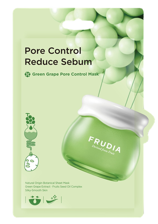 Frudia Green Grape Pore Control Mask ir maska ar zaļo vīnogu ekstraktiem, kas samazina poras un atbrīvo ādu no taukiem. Ar vairāk nekā 60% vīnogu ekstraktu jūs varat būt pārliecināti, ka jūsu poras būs mazāk redzamas acumirklī. Visas aktīvās sastāvdaļas iesūksies dziļi ādā un kops ādu no iekšpuses. Turklāt maska ir piemērota arī jutīgai ādai.