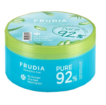 Frudia My Orchard Aloe Real nomierinošais gels ir zema pH līmeņa nomierinošs gels, kas nomierina jutīgu, sausu ādu, sniedzot atsvaidzinošu un mitrinošu sajūtu. Pilns ar svaigu mitrinošu enerģiju no 92% tīrām alvejas lapām no zaļās salas Džedžu. Šo nomierinošo gelu var lietot gan sejai, gan ķermenim, pēc sauļošanās, saules apdegumiem, ādas kairinājuma, to var pat sajaukt ar BB krēmu vai tonālo krēmu, lai saglabātu ādas mitrināšanu.
