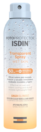 Atsvaidzinošs, tūlītēji žūstošs, caurspīdīgs izsmidzināms saules aizsarglīdzeklis. Var lietot uz mitras ādas. Ūdensizturīgs.