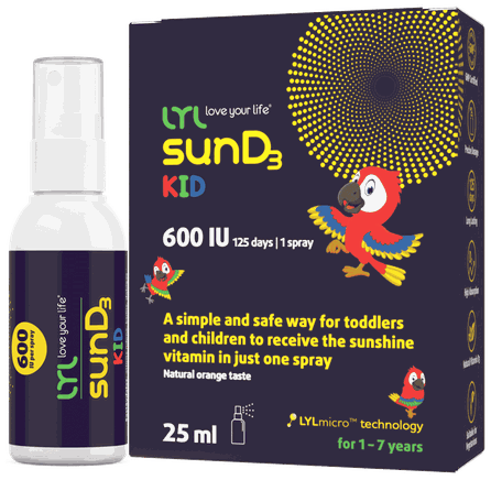 LYLsunD3 KID ātri paaugstina kopējo D vitamīna līmeni asinīs, garantē ilgstošu kopējā D vitamīna līmeņa noturību un drošu šī produkta lietošanu – apstiprina klīniskie pētījumi.