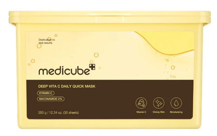 Medicube Deep Vita C Daily Quick Mask ir izgaismojoša kopšanas celulozes maska, kas bagātināta ar spēcīgiem vitamīniem un izstrādāta dažādu ādas problēmu risināšanai. Šīs maskas nodrošina ātrus un efektīvus rezultātus tikai 1 minūtes laikā, sniedzot papildu impulsu jūsu ādas kopšanas rutīnai. Jau pēc 1 minūtes lietošanas ir novērojami ievērojami uzlabojumi, tostarp 41,1 % ādas mirdzuma palielinājums, 0,6 % blāva ādas toņa uzlabojums, 2,4 % īslaicīga ādas apsārtuma samazinājums un –20,66 °F ādas temperatūras samazinājums. Atjaunojiet ādas toni un pastipriniet mirdzumu tikai 1 minūtes laikā ar mūsu jaudīgo formulu. Īpašības: Ātra izgaismojoša iedarbība Uzlabots mirdzums un labāka kosmētikas noturība Videi draudzīgs, izdevīgs iepakojums Galvenās sastāvdaļas: Niacinamīds (B3 vitamīns): palīdz uzlabot ādas tekstūru, poru izskatu, samazina smalko līniju redzamību un izgaismo ādas toni. Acetilglikozamīns: aminosahārs, kas palīdz izgaismot ādu, samazināt hiperpigmentācijas redzamību un uzlabot ādas elastību. A vitamīns + B5 vitamīns + E vitamīns: trīskāršs vitamīnu komplekss, kas palīdz aizsargāt ādu no brīvo radikāļu bojājumiem un nodrošina nomierinošu ādas kopšanu. Smiltsērkšķu ekstrakts (Hippophae Rhamnoides Water): iegūts no smiltsērkšķu ogām, bagāts ar antioksidantiem un vitamīniem, nodrošina ādas barošanu un aizsardzību, kā arī palīdz uzturēt ādas mitrumu.