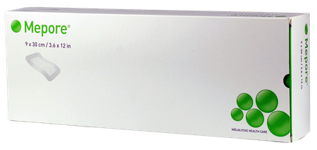 Līmējošs ķirurģiskais pārsējs. Mepore līmējošā mala nosedz rajonu ap brūci, ļaujot izvairīties no ārējas infekcijas. Mepore atgrūž ūdeni un nodrošina fizisku brūces aizsardzību.