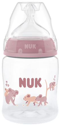 Temperatūras kontroles indikators līdzinās termometram un ir iestrādāts uz pudelītes virsmas un maina krāsu. Ja ēdiens ir par karstu, indikators iekrāsosies balts. Ideālā mazuļa ēdiena temperatūra ir 37°C un uz indikatora parādās gaiši zilā tonī.Pudelītes ir ar īpašo NUK dabisko formu, īpaši mīkstiem un žokļa formai pielāgotiem knupjiem. Forma atgādina mātes krūtsgalu zīdīšanas laikā. NUK pretkoliku gaisa sistēma NUK Anti-Colic Air System nodrošina dabīgu plūsmu un dzeršanu bez gaisa norīšanas.