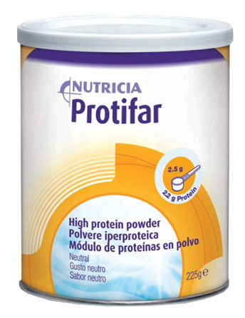 Īpašiem medicīniskiem nolūkiem paredzēta pārtika. Uztura režīms hipoproteinēmijas gadījumā. Protifar ir lietojams kā olbaltumvielu piedeva cilvēkiem, kuri ar ikdienas uzturu nespēj nodrošināt nepieciešamo olbaltumvielu daudzumu. To var izmantot kā piedevu gan saldiem, gan pikantiem ēdieniem un dzērieniem. Nesatur lipekli. Iepakots aizsargatmosfērā. Bez specifiskas garšas.