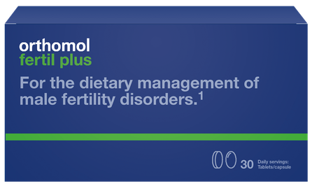 Orthomol Fertil plus ir diētiskā pārtika, tā paredzēta diētiskai lietošanai vīriešiem ar reproduktīvās funkcijas traucējumiem - cinks veicina normālu auglību un reprodukciju, palīdz uzturēt normālu testosterona līmeni asinīs.