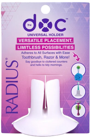 Mazliet samitrinot turētāja pamatni un vannasistabā piespiežot to pie līdzenas virsmas, varēsiet horizontāli vai vertikāli higiēniski uzglabāt savu Radius zobu suku, skuvekli, matu suku vai citus svarīgus piederumus.