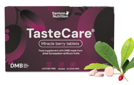 TasteCare ir uztura bagātinātājs ar unikālu garšas transformācijas efektu, kas palīdz mazināt skābumu un rūgtumu ēdienos un atklāt jaunas garšas pieredzes. Tabletes aktīvā viela mirakulīns mijiedarbojas ar garšas kārpiņām, radot dabisku garšas uztveres maiņu, nemainot ēdiena patieso garšu.