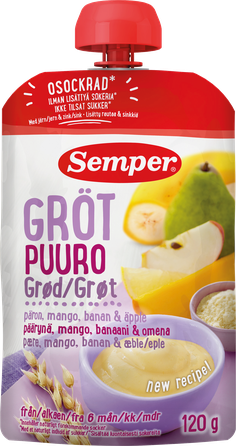 Graudu putra ar bumbieriem, mango, banānu un āboliem.