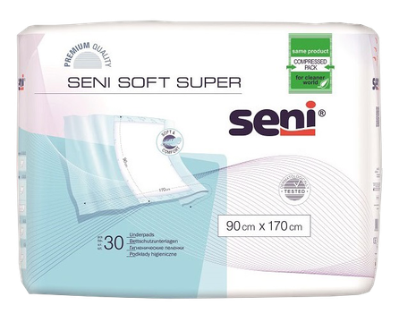 <p style="text-align:justify;">SENI SOFT absorbējošie paladziņi (90×170) 30 gab. Paladziņi ir premium klases mitrumu uzsūcošie higiēniskie paladziņi, kas ir ideāli piemēroti aizsardzībai autiņbiksīšu nomaiņas laikā. Maigs, neausta materiāla virsslānis sniedz komforta un maiguma sajūtu.</p>