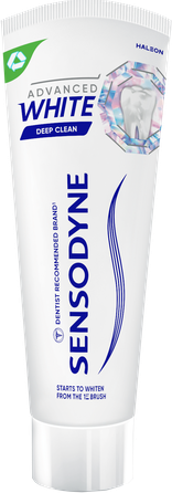 Baltāki zobi un aizsardzība pret jutīgumu. Sensodyne Advanced White zobu pastai ir zinātniski pierādīts sastāvs, kas efektīvi baltina zobus, kā arī tā nodrošina ilgstošu aizsardzību pret jutīgumu*. Īpaši zemas abrazivitātes sastāvs. Lietojot 2 reizes dienā, īpaši izstrādātais baltinošais darbības veids baltina zobus un vienlaikus ir saudzīgs zobu emaljai - stipriem, veseliem, baltiem zobiem. Sensodyne Advanced White ir zobu pasta ar fluorīdu, ko var lietot ik dienu un kas jutīgiem zobiem nodrošina piemērotu ikdienas kopšanu. ZOBU PASTA AR FLUORĪDU.