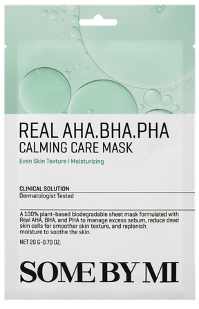 SOME BY MI Real AHA-BHA-PHA nomierinošā kopšanas maska ir sejas maska, kas paredzēta, lai nomierinātu un maigi attīrītu ādu, piešķirot tai svaigu un gludu izskatu.