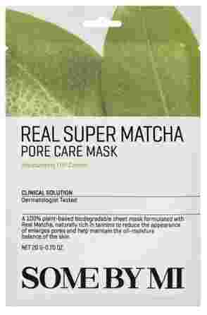 SOME BY MI Real Super Matcha Pore Care Mask ir vegāniska sejas maska ar mačas tējas ekstraktu dziļai poru attīrīšanai, liekā sebuma kontrolei un mitruma pārvaldībai.