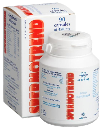 SPERMOTREND ir speciāls uztura bagātinātājs, kas sastāv no vitamīniem, minerālvielām, aminoskābēm un pigejas mizas pulvera. SPERMOTREND ir izstrādāts molekulārās aktivācijas procesā paaugstinot tā komponentu aktivitāti un pieejamību.