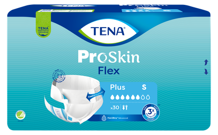 TENA ProSkin Flex Plus S (paredzētas lietotājam ar gurnu apkārtmēru no 61 cm līdz 87 cm) ir elastīgas jostbikses, kas izstrādātas, lai tās būtu vieglāk un ergonomiskāk nomaināmas. Tās ir piemērotas cilvēkiem, kas pārvietojas, ir mazkustīgi vai guloši. TENA ProSkin Flex ar FeelDry Advanced™ slāni nodrošina izcilu aizsardzību, ātri aizvadot šķidrumu prom no virskārtas un saglabājot ādu sausu. Īpaši ātri uzsūcošais slānis momentāni uzsūc pat lielu daudzumu urīna, efektvīvi novada to produkta dzīļakajos slāņos, nodrošinot sausuma sajūtu. Pilnīgi elpojošs ConfioAir™ ārējais slānis ļauj ādai brīvi elpot. Visas šīs priekšrocības saudzē ādu. ComfiStretch™ josta nodrošina pielāgošanas iespējas vēl lielākam komfortam un labākai aizsardzībai. Lai jostbikses būtu vieglāk izmantojamas, jostai ir viegli fiksējami klipši, kurus var droši piefiksēt, pielāgojot izstrādājumu auguma aprisēm. TENA ProSkin Flex ir pieejamas dažādos izmēros un uzsūkšanas pakāpēs.