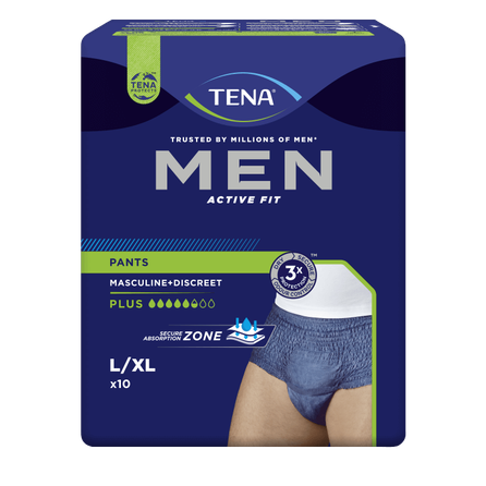 TENA Men Pants ir uzsūcoša apakšveļa vīriešiem, kas urīna nesaturēšanas gadījumā uzsūc urīnu absorbējošā slānī un notur to iekšā, pateicoties īpašam superabsorbentam. Tajā pašā laikā tie novērš nepatīkamas smakas noplūdi. Tie neizceļas zem apģērba, nodrošinot pilnīgu komfortu un neredzamību ejot.