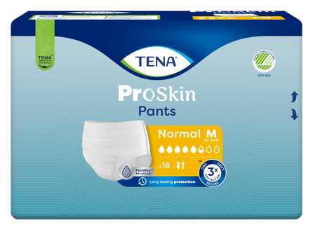 TENA ProSkin Pants Normal M (paredzētas lietotājam ar gurnu apkārtmēru no 80 līdz 110 cm) ir mīkstas un ērtas urīna nesaturēšanai paredzētas biksītes sievietēm un vīriešiem, valkāšanai gan dienā, gan naktī. Atšķirībā no parastajām pieaugušo autiņbiksēm TENA ProSkin biksīšu izgatavošanā ir izmantotas mitrumu uzsūcošās tehnoloģijas, kas nodrošina sausuma sajūtu, aizsardzību pret noplūdēm un nepatīkamo aromātu novēršanu. Pateicoties FeelDry Advanced™ slānim, šķidrums no virsējās kārtas ātri uzsūcas, un īpaši absorbējošais iekšējais slānis uzreiz notur pat lielu urīna daudzumu, neļaujot ādai nonākt saskarē ar mitrumu un saudzējot ādu. Šīs vienreiz lietojamās biksītes ir izgatavotas no audumam līdzīgiem elpojošiem materiāliem ar izcilu uzsūktspēju, tās ir uzvelkamas tāpat kā parastā apakšveļa, tāpēc šis izstrādājums veicina neatkarīgu un aktīvu ikdienas dzīvi. TENA ProSkin biksītēm ir dažādas uzsūktspējas pakāpes un plašs izmēru klāsts.