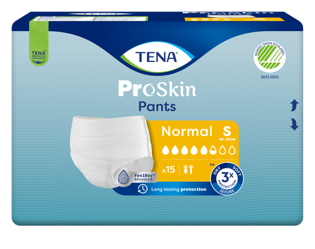 TENA ProSkin Pants Normal S (paredzētas lietotājam ar gurnu apkārtmēru no 65 līdz 85 cm) ir mīkstas un ērtas urīna nesaturēšanai paredzētas biksītes sievietēm un vīriešiem, valkāšanai gan dienā, gan naktī. Atšķirībā no parastajām pieaugušo autiņbiksēm TENA ProSkin biksīšu izgatavošanā ir izmantotas mitrumu uzsūcošās tehnoloģijas, kas nodrošina sausuma sajūtu, aizsardzību pret noplūdēm un nepatīkamo aromātu novēršanu. Pateicoties FeelDry Advanced™ slānim, šķidrums no virsējās kārtas ātri uzsūcas, un īpaši absorbējošais iekšējais slānis uzreiz notur pat lielu urīna daudzumu, neļaujot ādai nonākt saskarē ar mitrumu un saudzējot ādu. Šīs vienreiz lietojamās biksītes ir izgatavotas no audumam līdzīgiem elpojošiem materiāliem ar izcilu uzsūktspēju, tās ir uzvelkamas tāpat kā parastā apakšveļa, tāpēc šis izstrādājums veicina neatkarīgu un aktīvu ikdienas dzīvi. TENA ProSkin biksītēm ir dažādas uzsūktspējas pakāpes un plašs izmēru klāsts.