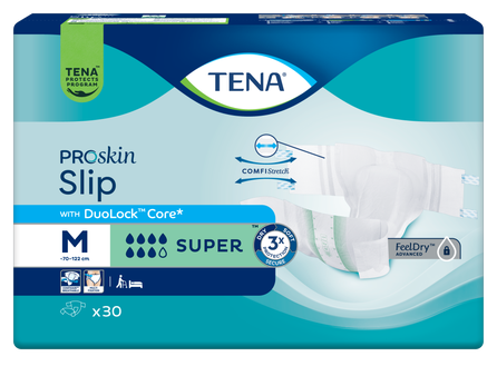 TENA ProSkin Slip ir drošs izstrādājums īpašai aizsardzībai pie urīna nesaturēšanas mazkustīgām un gulošām personām. Izstrādājumam ir ComfiStretch™ elastīgas sānu malas, kuras var regulēt un pielāgot tik daudz reižu, cik nepieciešams, nodrošinot ērtu noturēšanu vietā un drošību pret noplūdēm dažādām ķermeņa formām — stāvot, sēžot, guļot vai pagriežot. Tās atvieglo arī izstrādājuma nomaiņu.