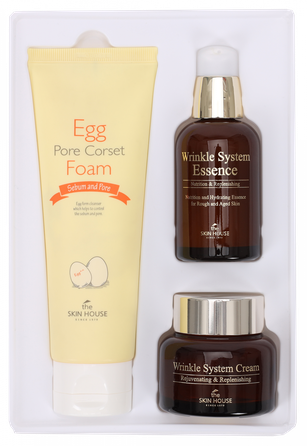 The Skin House Wrinkle System Essence 50 ml - nakts serums-esence ar koncentrētu kolagēnu un adenozīnu ādas elastīguma un tvirtuma atjaunošanai. Korejas Veselības departamenta sertificēts pretgrumbu līdzeklis. Rūpējas par ādu 5 dažādos veidos: mazina grumbas, uzlabo ādas elastību un blīvumu, balina ādu un sašaurina poras.