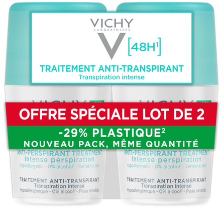 Pastipriniet ādu ar Vichy 48hr Intensive Anti-Perspirant Roll-On dezodorantu ar rullīti; formula, kas palīdz saglabāt jutīgu ādu svaigu un sausu. 48 stundu aizsardzība pret svīšanu.