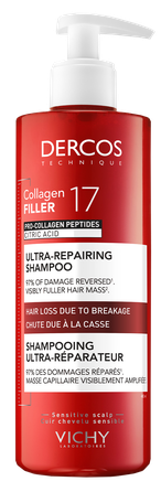 JAUNUMS: pirmais īpaši atjaunojošais DERCOS matu un galvas ādas kopšanas līdzeklis. Bagātināts ar citronskābi un prokolagēna peptīdiem, kas stiprina matu šķiedras (4) un nepieļauj matu izkrišanu trausluma dēļ. ŠAMPŪNS lieliski attīra un spēcina matus no saknēm līdz galiem, piešķirot tiem redzamu apjomu. PIERĀDĪTA EFEKTIVITĀTE: PAR 97% STIPRĀKI MATI (1) PAR 53% LIELĀKS APJOMS (3) Piemērots visu veidu matiem. Dermatoloģiski testēts. (1) Instrumentāls tests pēc līdzekļa pirms šampūna lietošanas, šampūna un kondicioniera lietošanas. (3) Instrumentāls tests. (4) Sastāvdaļu in vitro tests.