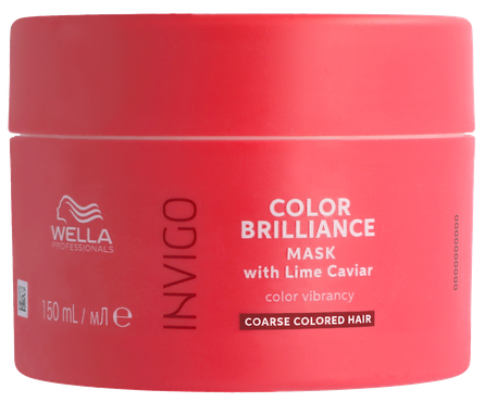 WELLA PROFESSIONALS Invigo Color Brilliance Coarse maska krāsas aizsardzībai ar laima kaviāru. Intensīva matu maska krāsotiem, rupjiem matiem. Nogludina mata virskārtu un uzlabo krāsas mirdzumu. Ar aizsargājošu Anti-Oxidant Shield tehnoloģiju.